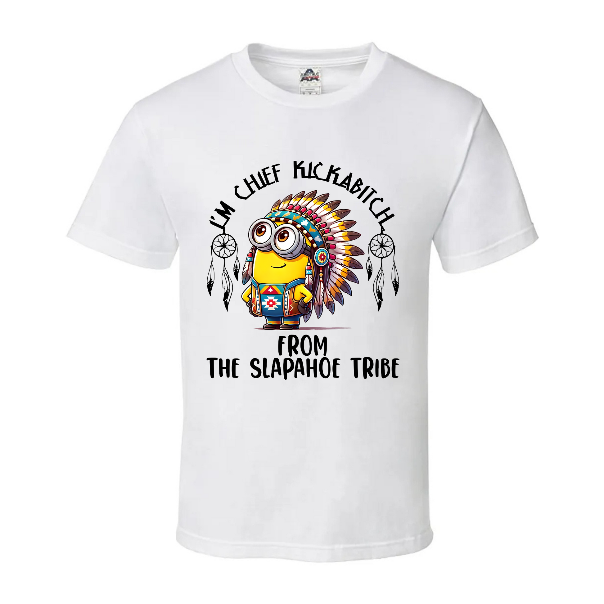 Spice up your wardrobe with Chief Kickabitch! Our playful and quirky design is sure to add a touch of humor to any outfit. Don't take yourself too seriously, have some fun with our Chief Kickabitch tee. (Warning: may cause laughter and compliments.)