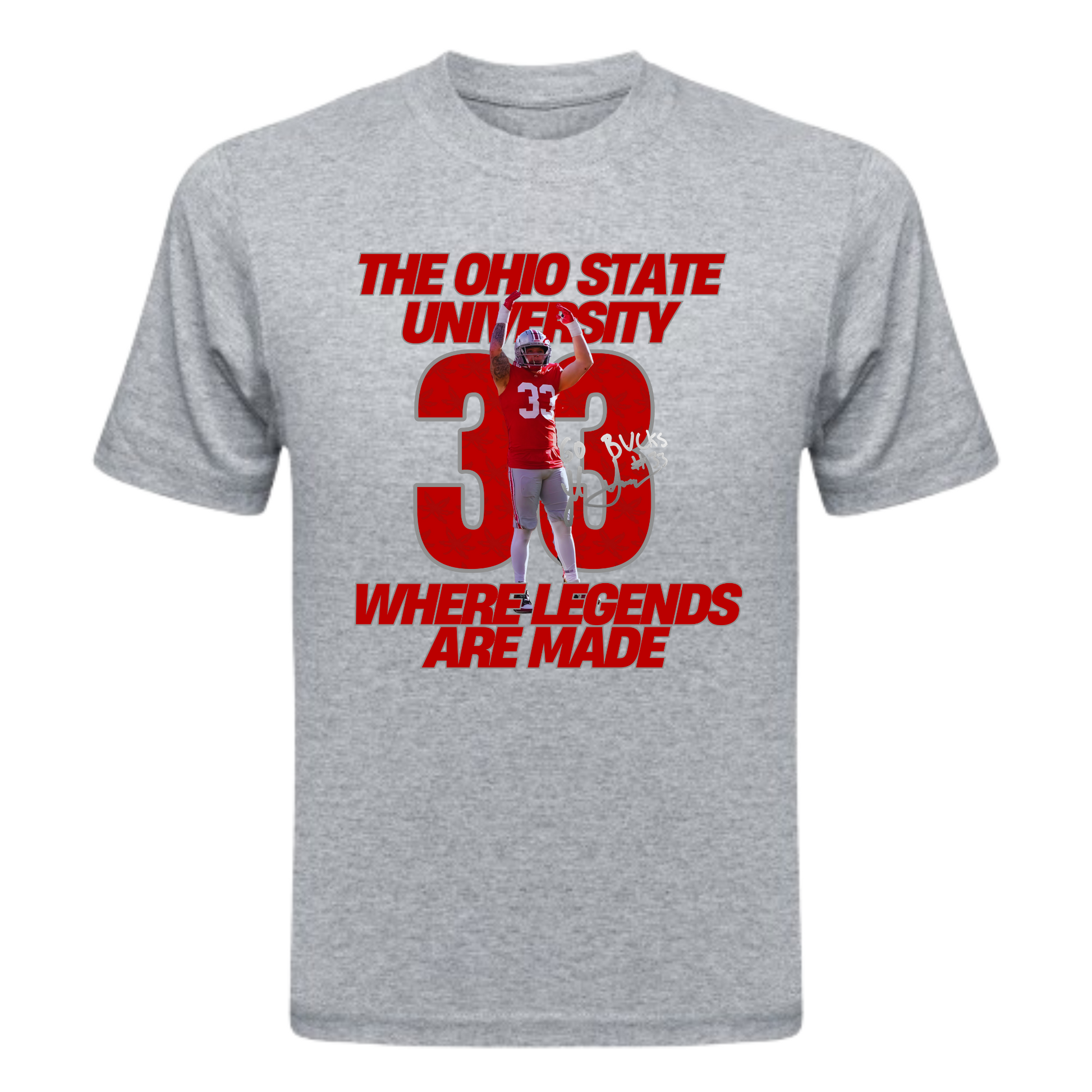 Step up your game with Jack Sawyer 33! This classic, durable shirt will keep you comfy while showing off your team spirit for the Ohio State football national champions. Featuring Captain Jack Sawyer, so you can rep your favorite player. Game on!
